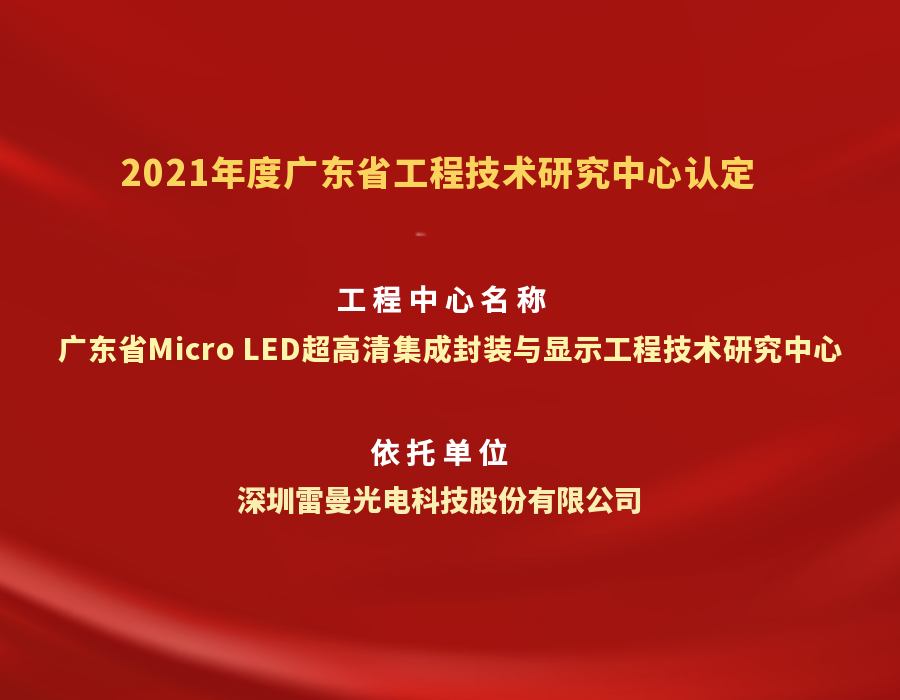2021年8月,廣東省科學(xué)技術(shù)廳發(fā)布2021年廣東省工程技術(shù)研究中心認(rèn)定名單,我司建設(shè)的廣東省Micro LED超...
